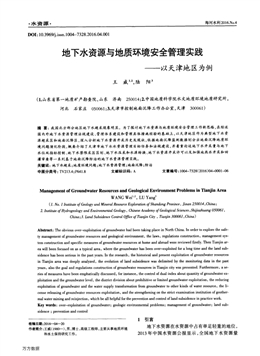 1.山東省第一地質礦產勘查院 2.中國地質科學院水文地質環境地質研究所 3.天津市控制地面沉降工作辦公室 |