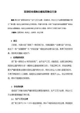 采取綜合措施治理窯尾…