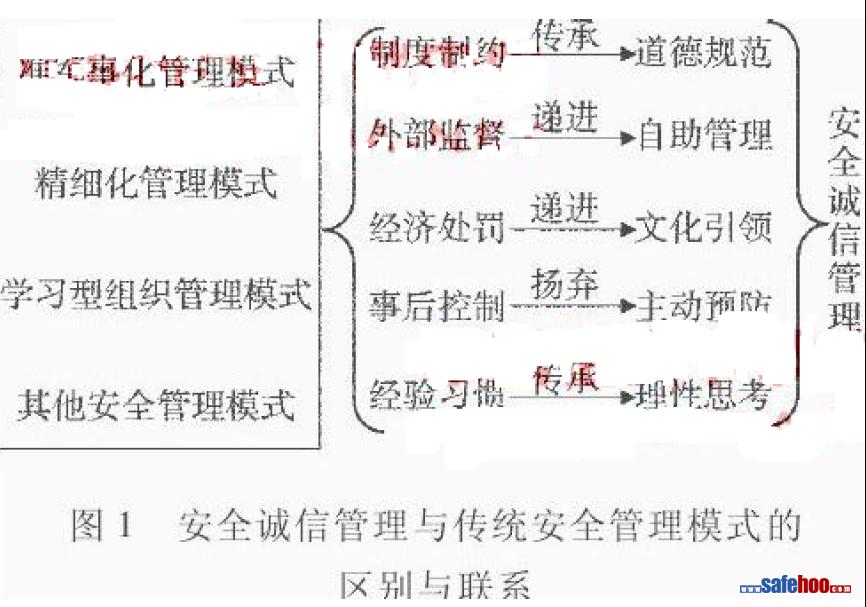 ????安全誠信管理與傳統安全管理模式的區別與聯系如圖1所示。