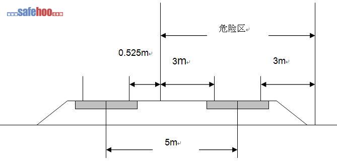 2、我國(guó)高速鐵路的線(xiàn)間距為5米,以時(shí)速250公里為例危險(xiǎn)區(qū)為下圖所示: