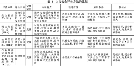 7 火災(zāi)安全評價方法比較(見表1)