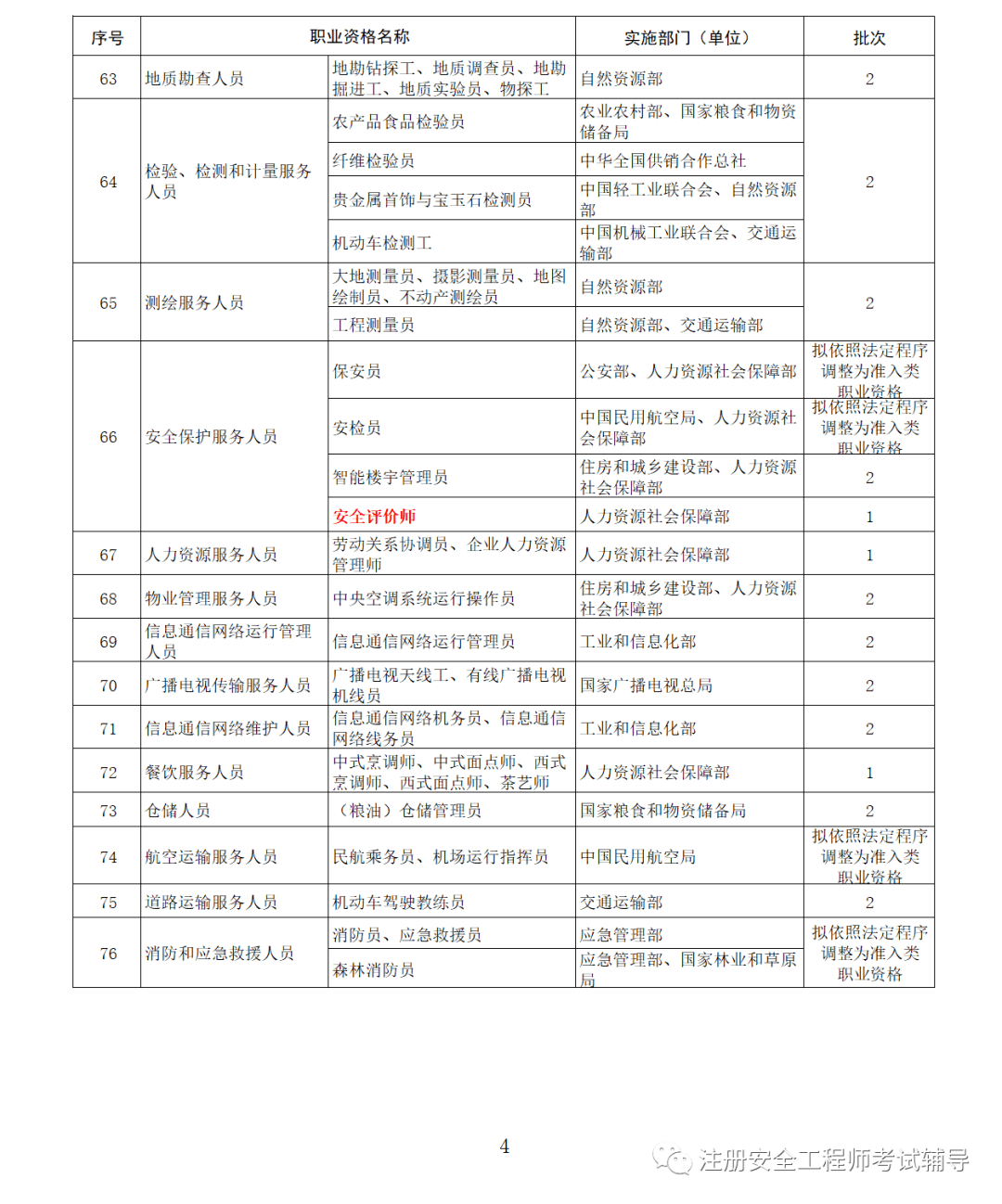 為貫徹落實2019年12月30日國務院常務會議精神,擬分批將水平評價類技能人員職業資格退出目錄,其中:人力資源社會保障部門和有關部門組織實施的14項職業資格(涉及29個職業)擬于9月30日前第一批退出;其他部門(單位)組織實施的66項職業資格(涉及156個職業)擬于12月31日前第二批退出;與公共安全、人身健康等密切相關的職業(工種)擬依法調整為準入類職業資格(具體安排詳見附件)。