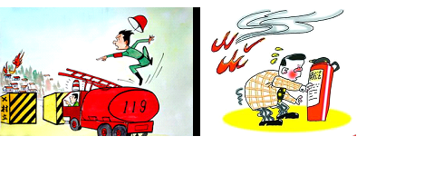 2、根據討論,結合《安全教育讀本》向學生補充一些防火知識。播放制作好的圖片: