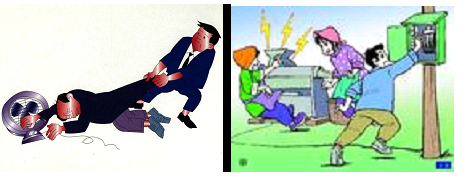 2、 教師根據學生的回答及時教育:現代家庭,隨著生活水平不斷提高,家庭中的電器也越來越多,給我們學習、生活帶來了好多方便及樂趣。但是,如果我們沒有掌握一定的用電知識,不注意用電安全,就會很危險。所以,我們不要出于好奇,自行拆卸、維修電器,不要私自拉或亂接電線和隨意拆裝電器。使用和操作電器要注意不能濕水,一旦電器出現故障,應立即截斷電源。播放制作好的圖片: