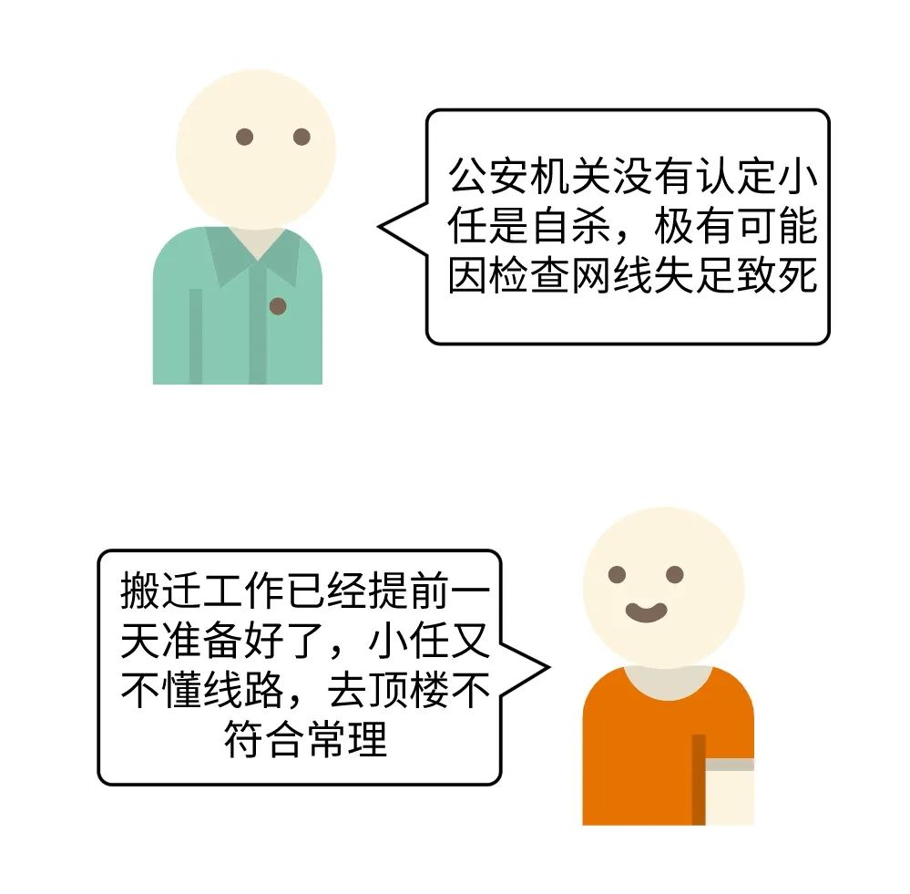 根據(jù)公安機(jī)關(guān)作出的《調(diào)查情況說(shuō)明》等,公安機(jī)關(guān)并未對(duì)小任的死亡作出”自殺“的結(jié)論性意見(jiàn),所以并不能認(rèn)定小任高空墜亡屬于“自殺”。