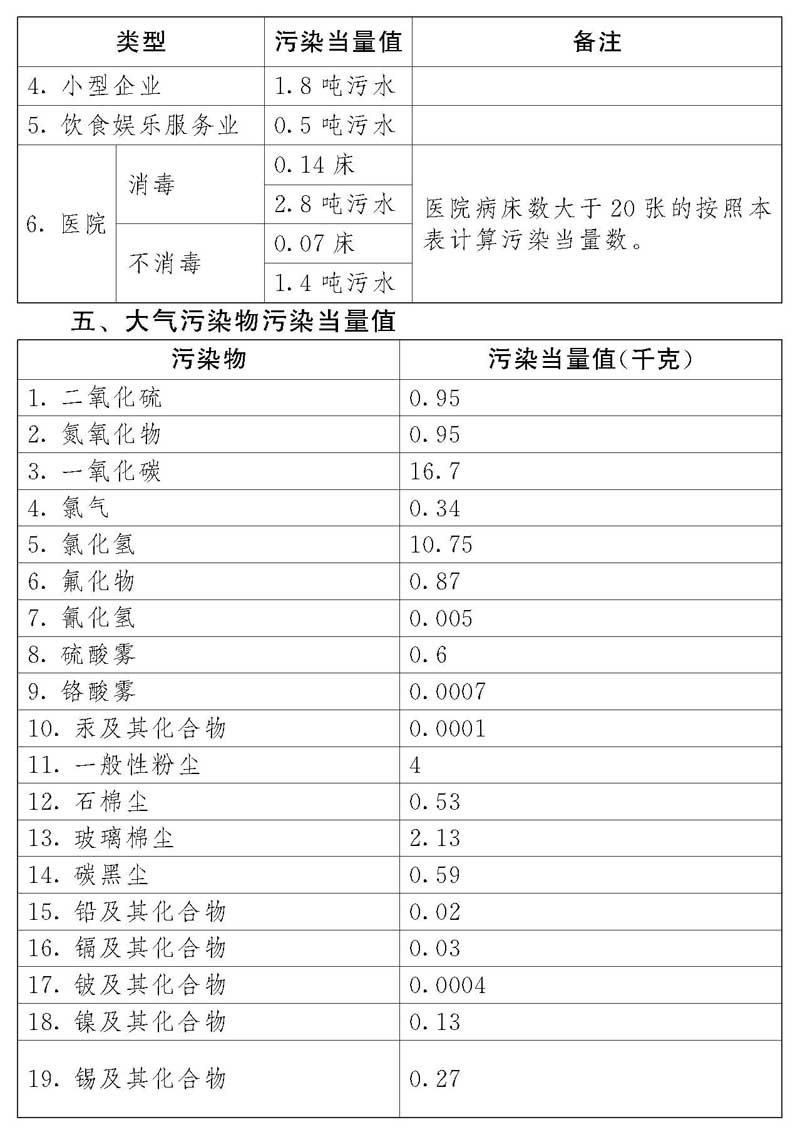 ????(一)污染當量,是指根據(jù)污染物或者污染排放活動對環(huán)境的有害程度以及處理的技術經(jīng)濟性,衡量不同污染物對環(huán)境污染的綜合性指標或者計量單位。同一介質相同污染當量的不同污染物,其污染程度基本相當。