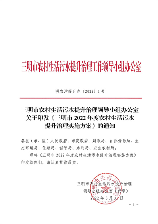 發(fā) 文 號:明農(nóng)污提升辦(2022)1號