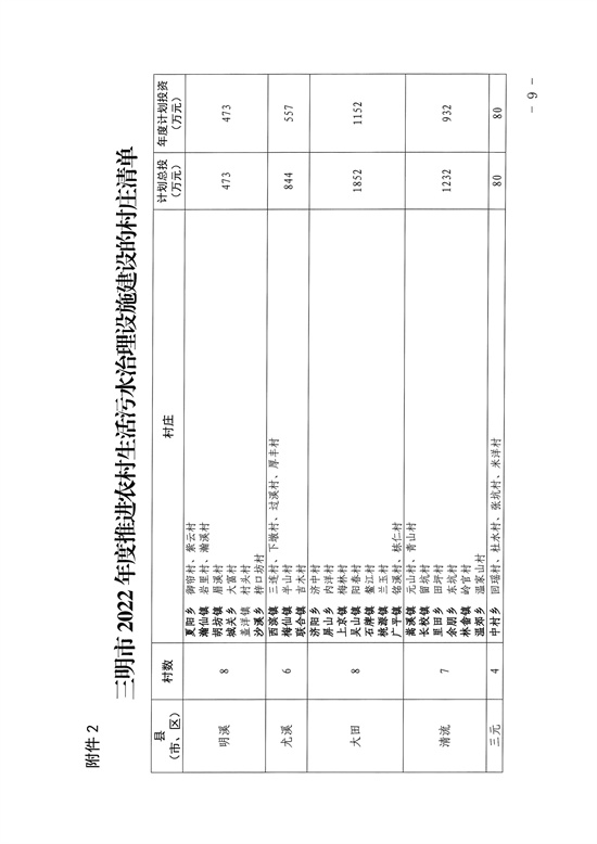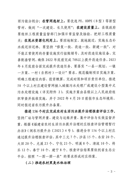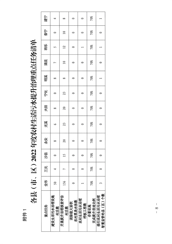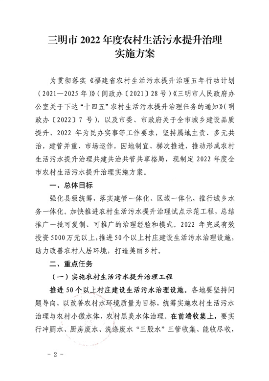 三明市2022年度農(nóng)村生活污水提升治理實施方案