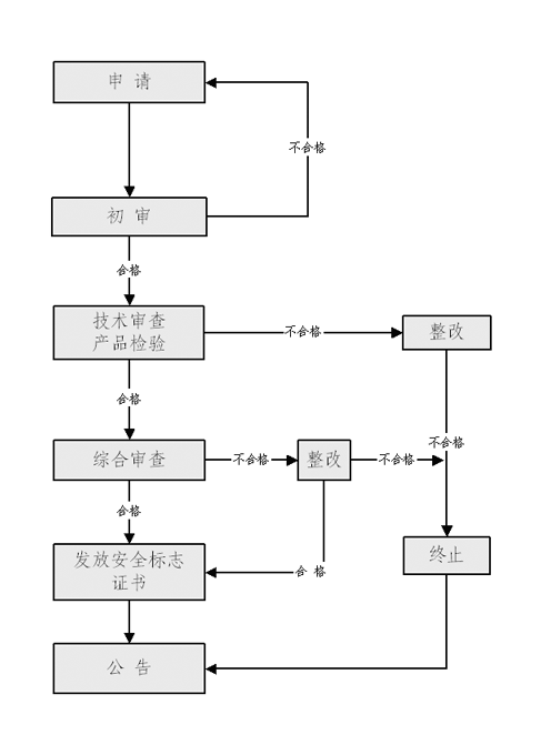 采用新材料、新技術(shù)和新工藝生產(chǎn)的新產(chǎn)品需進行工業(yè)性試驗的,申辦安全標(biāo)志的程序,主要包括:申請、技術(shù)審查、產(chǎn)品檢驗、綜合審查。符合條件的,針對所檢驗的產(chǎn)品發(fā)放附有產(chǎn)品編號、有效期為6個月的安全標(biāo)志證書。