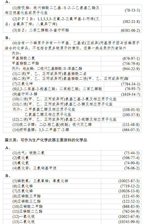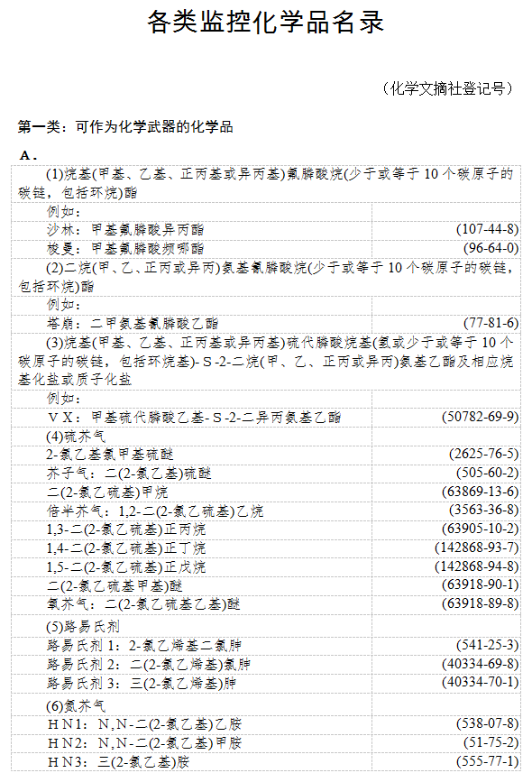 《各類監控化學品名錄》已經2020年4月23日工業和信息化部第15次部務會議審議通過,并報國務院批準,現予公布,自公布之日起施行。原化學工業部1996年5月15日公布的《各類監控化學品名錄》(化學工業部令第11號)同時廢止。
