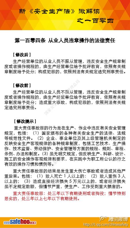 新《安全生產法》微解讀——第一百零四條 從業人員違章操作的法律責任