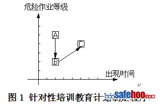 如圖1所示,危險(xiǎn)作業(yè)A、B、C的出現(xiàn)時(shí)間A與B同時(shí)且先于C,而危險(xiǎn)等級A>B>C,因此在針對性教育培訓(xùn)計(jì)劃制定過程中就要先以A再B后C的程序進(jìn)行。