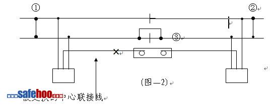 ②用回流聯接線將兩個區段的雙軌條分別橫向聯通,再用一條回流聯接線將一個絕緣節縱向聯通,方準開始工作(如圖—2);