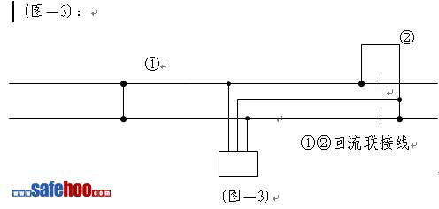 ②用回流聯(lián)接線將軌道電路區(qū)段橫向接通,再用一條回流聯(lián)接線將絕緣節(jié)縱向接通(如圖—3),方準(zhǔn)可是工作;