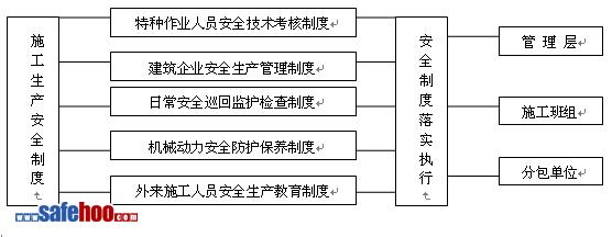 (3)項目工程師:負責“施工組織設計”中安全技術措施的編制、實施、檢查和新工藝、新技術的安全操作規程、安全技術措施制定和交底。對危險點,重要部位制訂監控措施和落實人員。