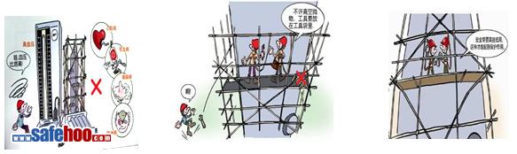 8. 高處作業嚴禁上下投擲工具、材料和雜物等,所用材料要堆放平穩,工具應放在工具套(袋)內,有防止墜落的措施。