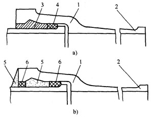 (2)S型接口 S型接口與N1型接口的不同處是S型接口插口端有一凹槽,槽內(nèi)放一鋼制支撐圈,使連接的管道保持同心度及均勻的接口間隙,并可防止管道拔出。接口環(huán)形間隙中多一道隔離膠圈,可阻擋燃?xì)馇治g密封膠圈,故有良好可靠的嚴(yán)密性,而且在維修時可不停氣而更換密封膠圈。見圖2-3。