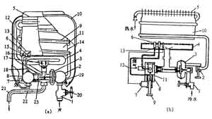 圖3—8—3(b)所示為前制式快速熱水器的工作原理圖。它由燃氣系統、水路系統、熱交換器和煙氣排除系統所組成。