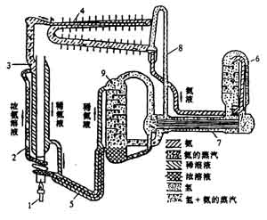 燃氣冰箱是一種吸收式制冷設備。它與電冰箱相比具有以下優點:沒有易磨損的和發出響聲的轉動部分,使用壽命較長;它不需要電源,不受其它家用電器工作的干擾。燃氣冰箱利用燃氣火焰作為熱源,制冷劑是氨(NH3)。圖3—8—6示出燃氣冰箱工作原理。