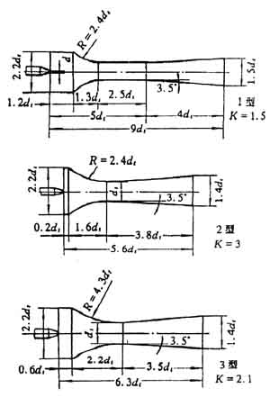 選取1型引射器,如圖3—6—2l,其能量損失系數K=1.5。