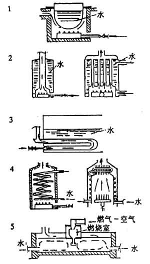 對液體(水)加熱,按加熱面的形式可分為五種方法,如圖3—8—l0。其特征分別為: