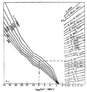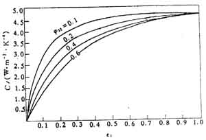 其中,導來輻射系數C如公式(9—2),為爐氣黑度和爐壁對爐料的角系數的函數,即C=f(ε1,ψ32)。在實際使用中,將該函數式繪制成曲線,如圖3—9—11所示。根據已知的ε1和ψ32可以非常簡便地查出C值。