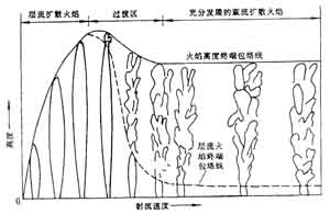圖3-5-4 火焰的形狀及高度隨射流速度增加的連續(xù)變化