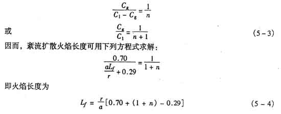 2為火焰長度,該處的燃燒必在射流軸線上進(jìn)行,燃?xì)馀c空氣的混合比符合化學(xué)當(dāng)量比。