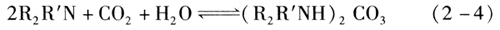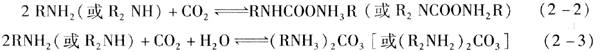 公式(2-2)是主要反應,反應生成氨基甲酸鹽;公式(2-3)是次要反應,反應生成碳酸鹽。