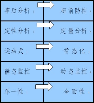 1、變事后分析為超前預(yù)防。傳統(tǒng)的安全管理是以事后處理為核心的被動(dòng)式安全管理和以傳統(tǒng)經(jīng)驗(yàn)為依據(jù)的事前預(yù)防管理。“三位一體”的安全風(fēng)險(xiǎn)預(yù)警體系強(qiáng)調(diào)以企業(yè)生產(chǎn)系統(tǒng)整體為對象,以人為核心,采用系統(tǒng)安全分析手段和現(xiàn)代控制方法,分析生產(chǎn)系統(tǒng)存在的各種危險(xiǎn)因素,做好系統(tǒng)控制,使危險(xiǎn)因素始終保持在可接受的安全狀態(tài),強(qiáng)調(diào)超前管理與重點(diǎn)控制。