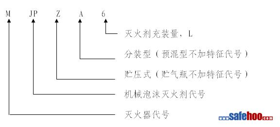 注: ㈠預混型,機械泡沫滅火劑原液與清水,預先按比例混合后,一起裝入滅火器內。