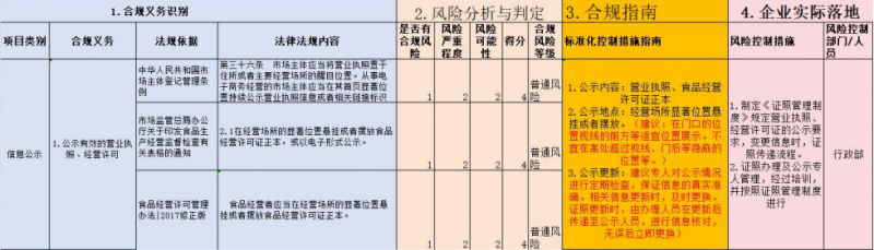 食品生產經營企業可以參照資質公示風險合規指南,制定出其他環節的風險合規指南。