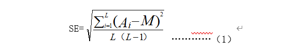 5、均值M和標準誤差SE:將各級別所有處理后的各結果,求和后除以點位數量L即得到均值M;再計算各級別處理后各結果的標準誤差SE,SE按式(1)計算: