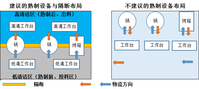 車間作為產品實現的場所,既要考慮到保證食品質量與安全,又要考慮工藝流程的順暢性與功能分區的有效利用,最后還要考慮到安全生產,留出必要的安全通道與消防設施空間。想要做到以上三點,首先要從工藝流程與車間布局設計入手,這也是一般的審查、審核上來就要看工藝流程、廠區平面圖、車間功能布局與設備布局圖的原因。