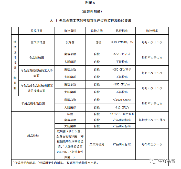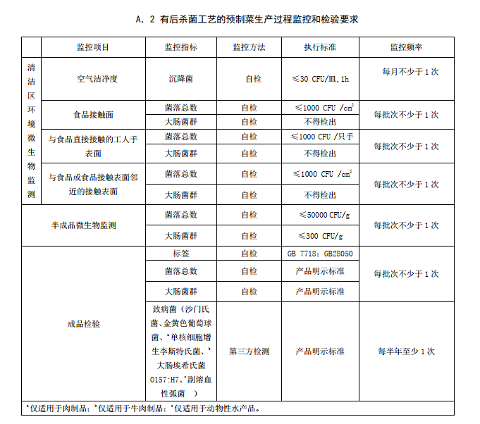 3.1.1 無后殺菌工藝的預(yù)制菜:經(jīng)熟制后包裝,需冷藏或冷凍保存的預(yù)制菜。