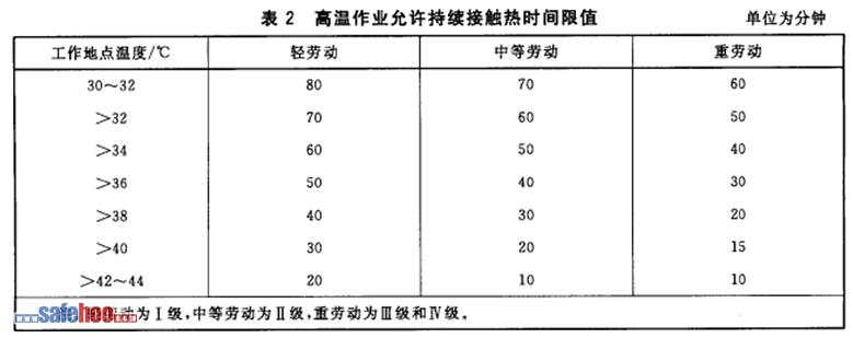 高溫作業持續時間:見下表,中間休息不得少于15min。