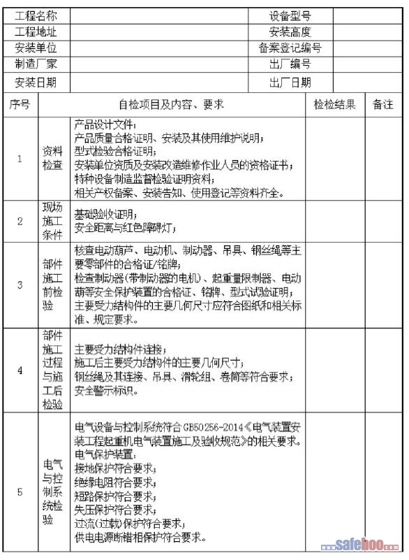 橋門式起重機每日使用前檢查表
