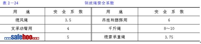 (8) 鋼絲繩的安全系數(shù)不得小于表2-24的要求: