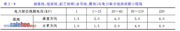 6. 不得在電力架空線路下方碼放管子;需在其一側(cè)堆放且采用起重機(jī)吊裝時(shí),機(jī)械(含吊物、載物)與電力架空線路的最小距離必須符合表2-8的要求。