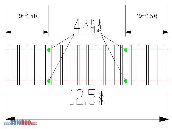 2、兩側(cè)吊點(diǎn)必須為相同長(zhǎng)度(外側(cè)鋼軌頭至吊點(diǎn))。