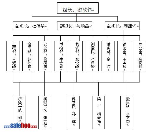 為確保冬季施工中的工程安全,連霍高速洛三段改擴建工程TJ-2標項目部成立了以項目經理為組長,項目總工程師、項目副經理為副組長,以安全部牽頭負責日常工作、各部室成員為組員的冬季安全專項施工領導小組: