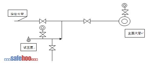 4.8?減溫減壓間主蒸汽管閥門﹙DN250 PN10MPa﹚至#2汽輪機聯絡母管接口這段主蒸汽管的試壓步驟與方法與鍋爐集汽集箱出口電動閥門﹙DN300 ?PN10MPa﹚至#3汽輪機主汽門間主蒸汽管試壓步驟與方法相同;試壓要求與合格標準亦相同。