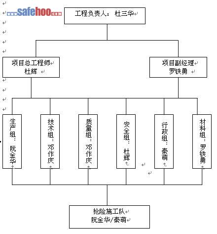 由項目負責人、安全員、材料員等成立應急小組。項目負責人杜三華同志任應急小組組長。