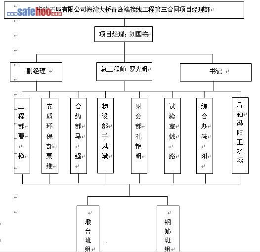 (4)、墩臺施工前對施工人員進行必要的安全教育,嚴格執行安全制度和規定,施工時設置各種防護設施,保證人員人身安全。墩上墩下有關人員均戴安全帽,工作時,工作人員系好安全帶,無關人員嚴禁到墩上去,嚴禁從高空向下拋擲雜物。