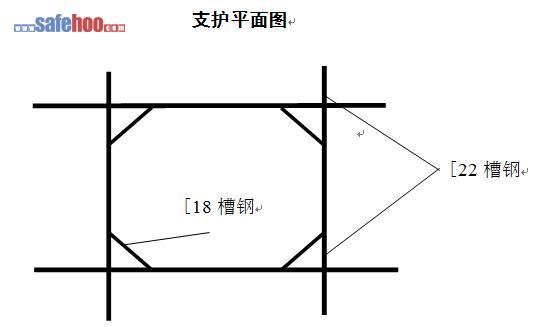 ??????? (1)為確保下管和頂進的順利與安全,本工程工作坑采用密撐支護,撐板采用4×0.3×0.06m木板,橫撐選用[22槽鋼、[18槽鋼,第一層機械開挖后,人工進行對邊坡修正,坡度為1:0.05,邊坡修正后進行密撐支護,呈井字狀支設槽鋼兩道,水平間距為3m,槽鋼連接處采用[18槽鋼焊45°斜撐。