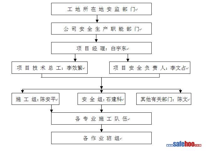 ?? ①、在公司安全監(jiān)督部門的領(lǐng)導(dǎo)下,項(xiàng)目經(jīng)理部成立安全生產(chǎn)領(lǐng)導(dǎo)小組,由項(xiàng)目經(jīng)理主持安全生產(chǎn)領(lǐng)導(dǎo)小組開展工作,行使職責(zé)。