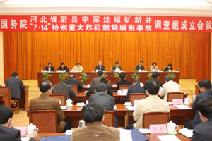 10月26日,經(jīng)國(guó)務(wù)院批準(zhǔn),國(guó)務(wù)院河北省蔚縣李家洼煤礦新井“7.14”特別重大炸藥燃燒瞞報(bào)事故調(diào)查組成立。調(diào)查組由國(guó)家安全生產(chǎn)監(jiān)督管理總局、國(guó)家煤礦安全監(jiān)察局、監(jiān)察部、公安部、全國(guó)總工會(huì)、國(guó)土資源部和河北省政府組成。最高人民檢察院派員參加,下設(shè)技術(shù)、管理、綜合三個(gè)小組開(kāi)展工作。