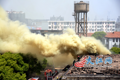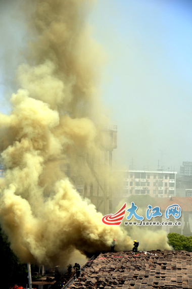 4月20日上午,南昌洪都北大道李家莊江西登月食品廠倉庫起火。由于被燃燒的是泡沫制品,現場外圍看不到明火只看到灰色的滾滾濃煙。記者趕到現場時,消防人員已經展開救援。據稱,倉庫內有兩人被困,但此消息暫未得到權威證實。