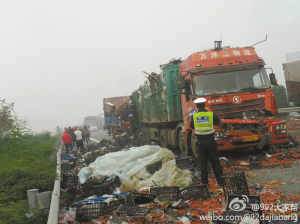 據(jù)事故現(xiàn)場附近一村民稱,事故發(fā)生在9日早晨6時(shí)許,當(dāng)時(shí)是霧霾天氣,能見度很低。他趕到現(xiàn)場時(shí),看到很多車輛撞在一起,有的車輛正在猛烈燃燒著,有現(xiàn)場人員稱,燃燒車輛內(nèi)有被困人員。近500米路面上,到處是車輛碎片和散落的貨物。有徐水縣和保定市的四輛消防車,以及滿城縣醫(yī)院、保定第七醫(yī)院、徐水縣醫(yī)院的多輛救護(hù)車,先后趕到現(xiàn)場展開救援。受事故影響,京昆高速保定段完全斷交,事故現(xiàn)場清理工作一直持續(xù)到當(dāng)日下午6時(shí)許才告一段落,很多過往車輛被堵到當(dāng)天晚上才得以通行。