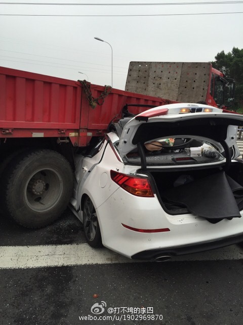 6月30日14時30分,在南京江寧七里崗,一輛起亞轎車與反方向貨車相撞,鉆進(jìn)貨車車肚,轎車幾乎被削頂,車上四人被困。據(jù)了解,這輛起亞轎車?yán)镉腥幸慌渲袃赡幸慌汛_認(rèn)死亡,還有一名男子正在搶救。